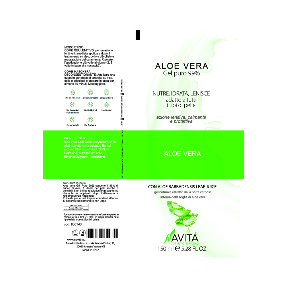 Gel aloe contenente il 99% di succo di aloe, ricavato dalle foglie della pianta.