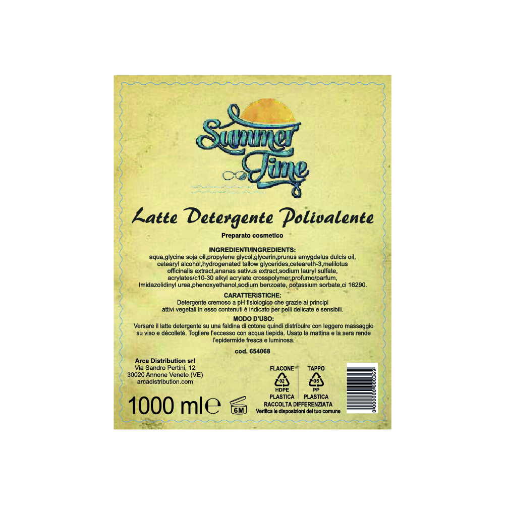 Latte detergente polivalente a pH fisiologico che grazie ai principi attivi vegetali in esso contenuti è indicato per pelli delicate e sensibili.
