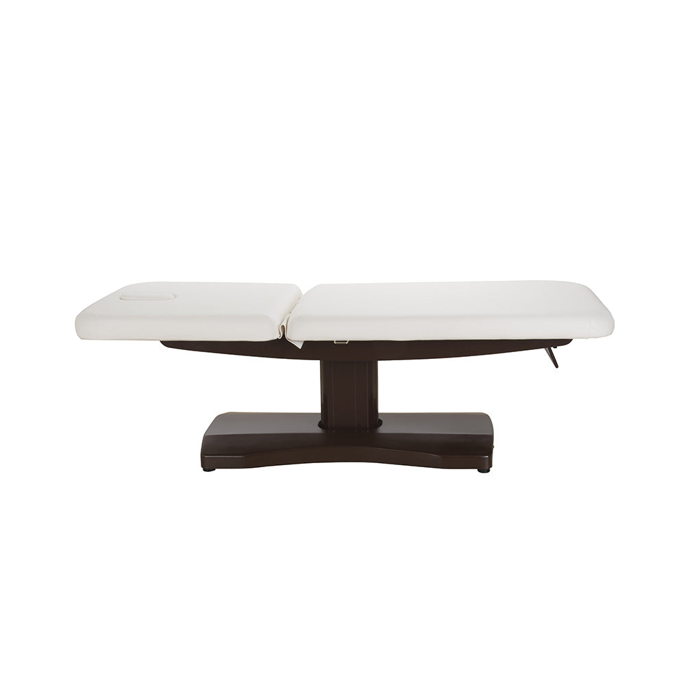Dotato di foro facciale, telecomando e portarotolo. Un unico motore elettrico consente di regolare l'altezza del lettino. Inclinazione manuale dello schienale (fino a 70°)