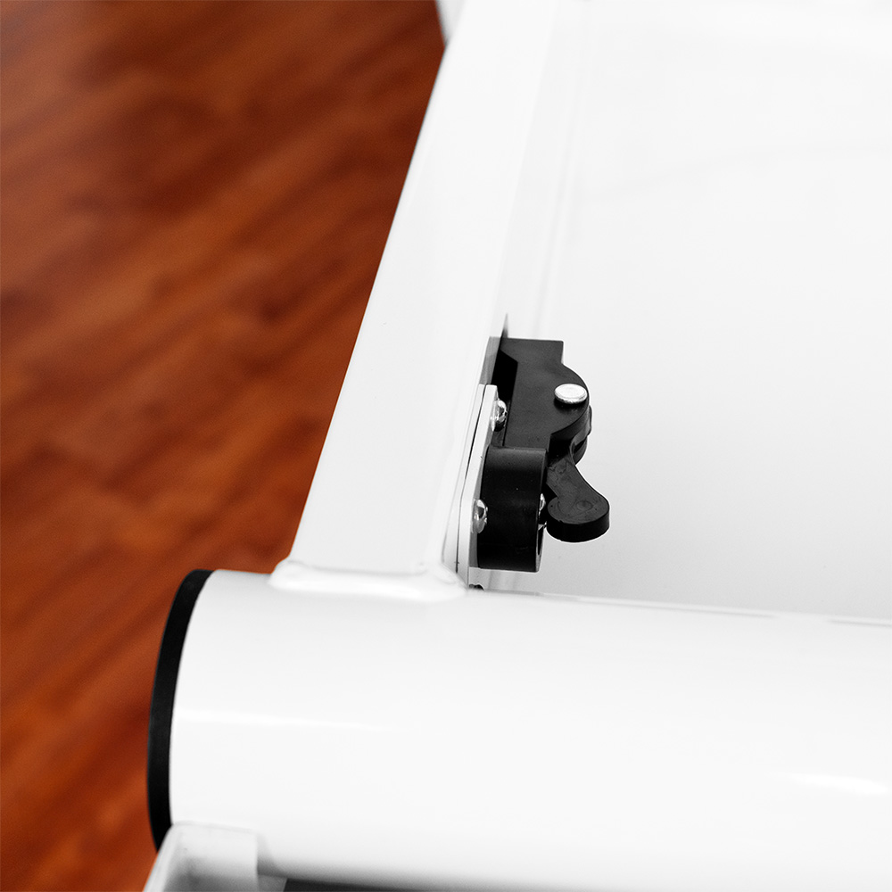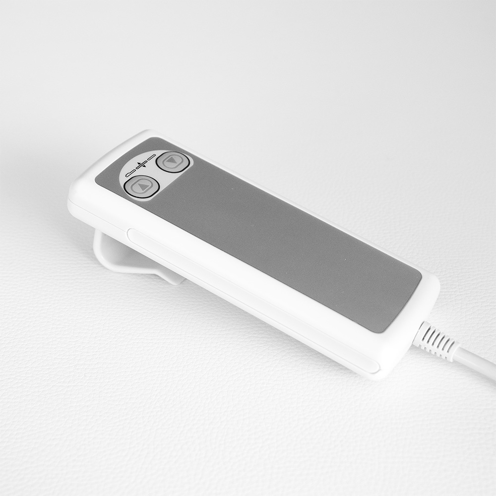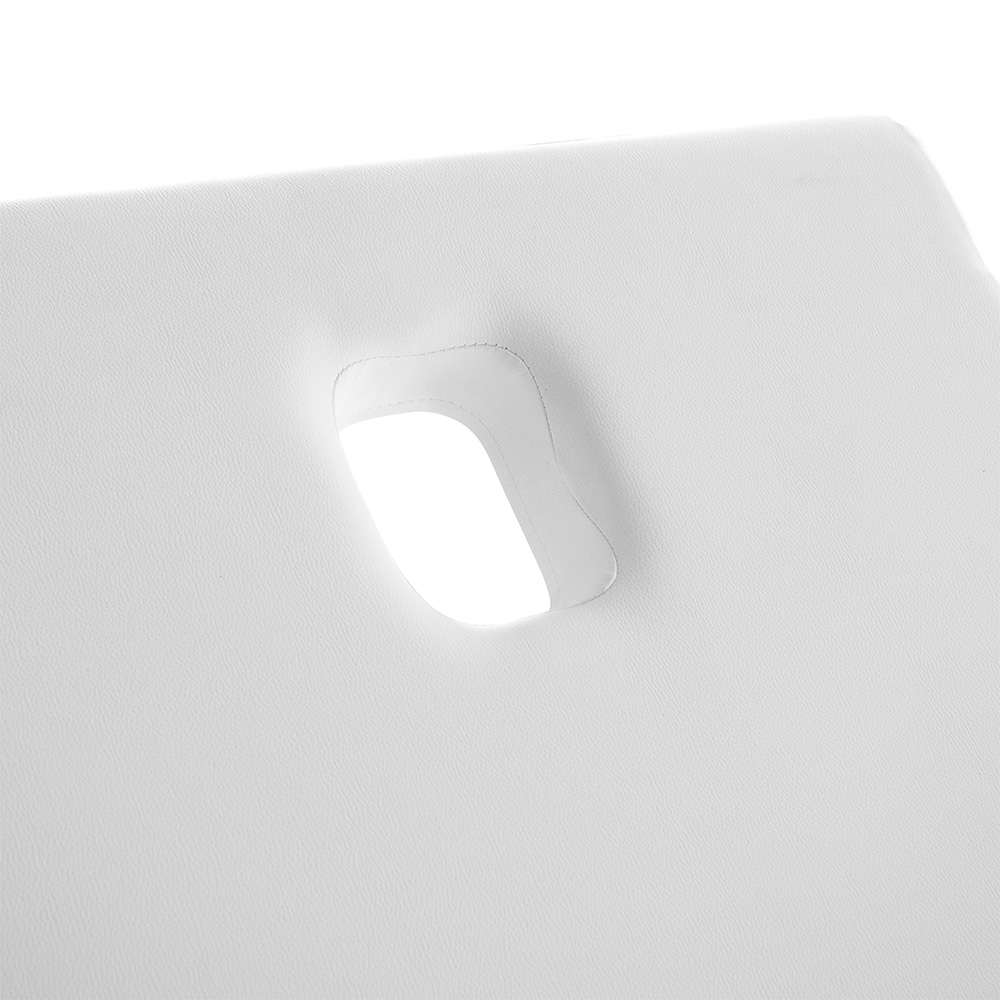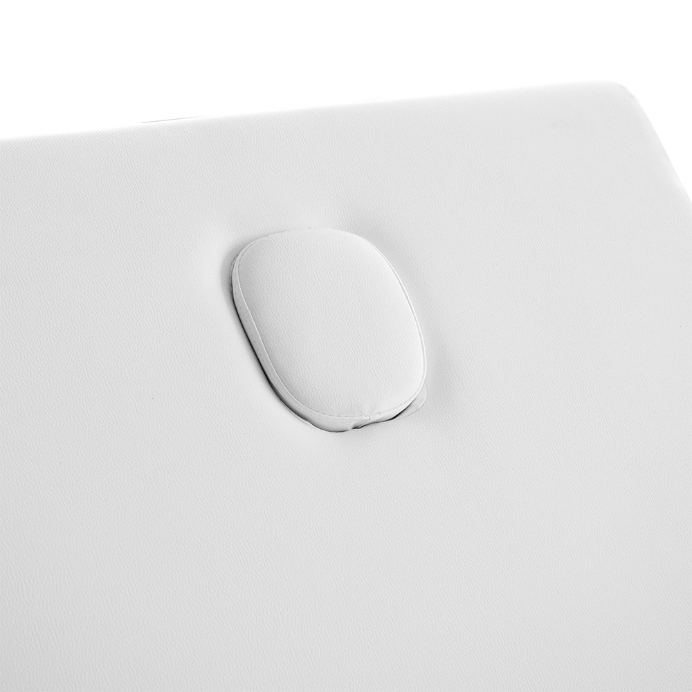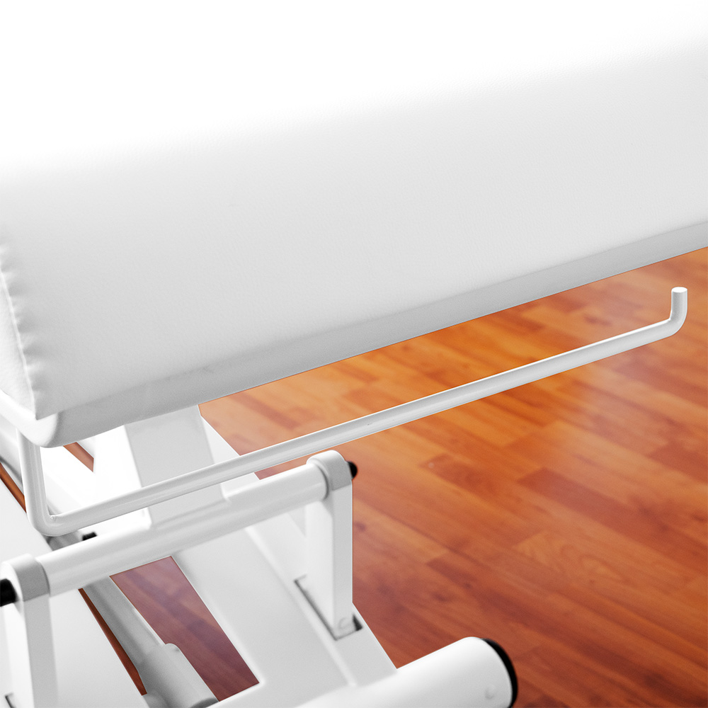 Lettino a 1 snodo dal design minimalista. È fornito di 1 motore per regolare l'altezza. L'inclinazione dello schienale è regolabile con un pistone a gas. Telaio metallico con base a forma di semisfera e 2 ruote incoporate che ne facilitano lo spostamento. Rivestimento in PU bianco di alta qualità e facile da pulire. Portarotolo incorporato.