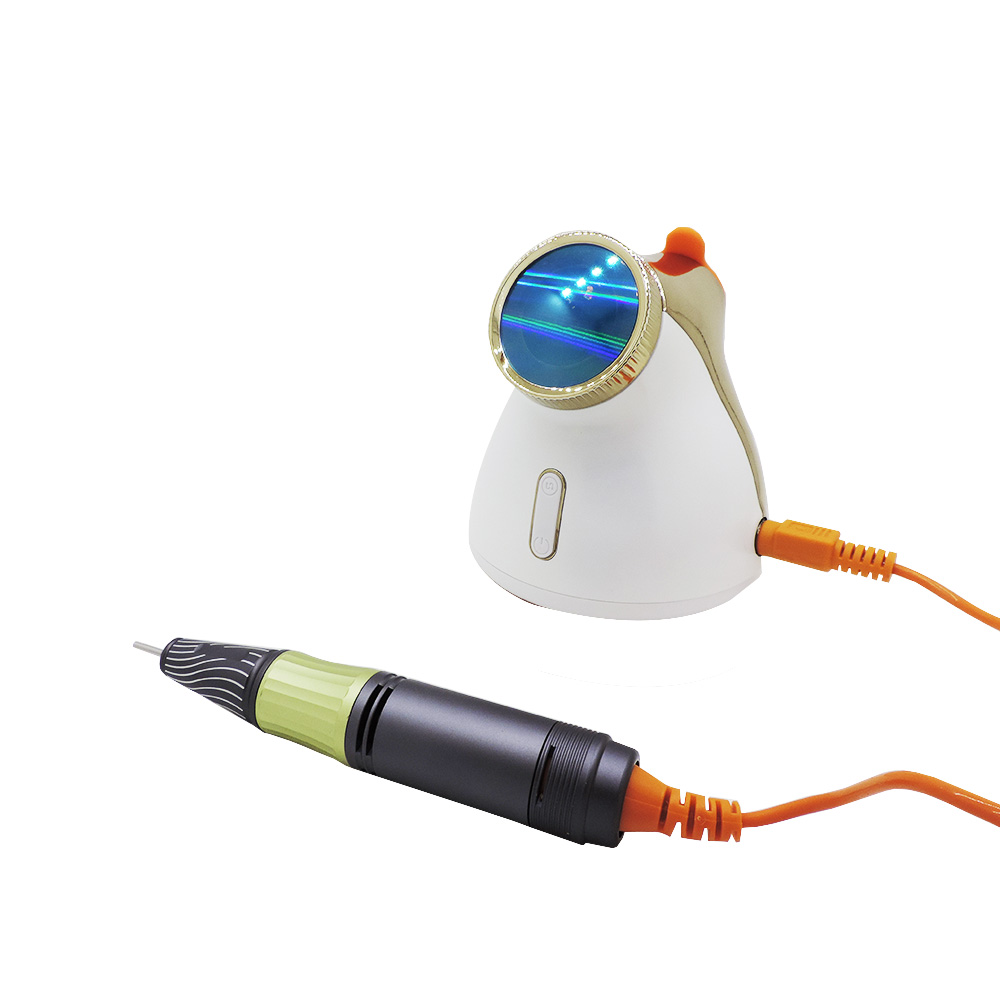 Micromotore progettato per la lavorazione delle unghie in manicure e pedicure. Realizzato in plastica ABS e alluminio. Il manipolo raggiunge la velocità di rotazione di 35.000 giri al minuto.
