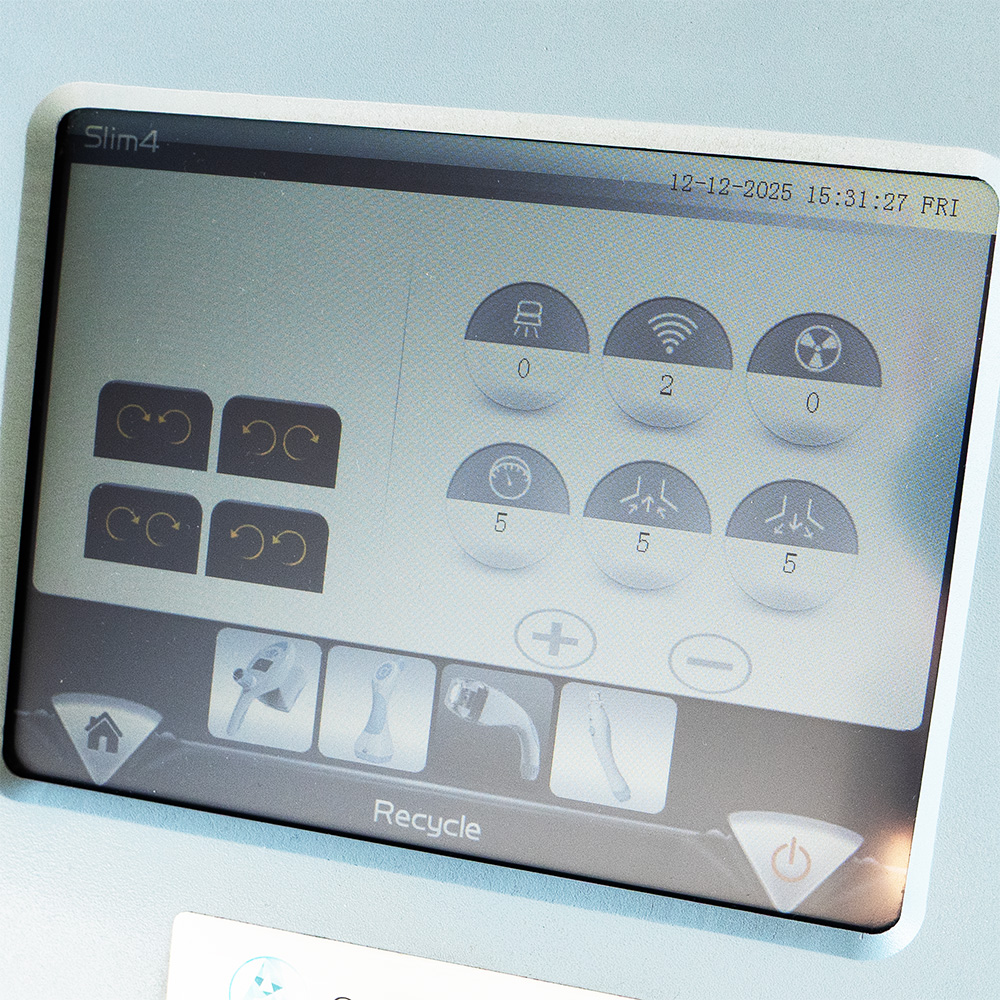 SLIM4 è una tecnologia combinata multifunzione. Il corpo macchina è il vacuum con rulli massaggianti integrati che eseguono un vibromassaggio che aumenta il flusso linfatico, facilitando l’espulsione delle tossine e l’accelerazione del metabolismo cellulare. A questo vengono combinate ulteriori tecnologie quali radiofrequenza bipolare che promuove uno shock termico che stimola la sintesi di nuovo collagene, LED e infrarosso che aumentano la circolazione sanguigna con un conseguente miglioramento del trasporto di ossigeno alle cellule.