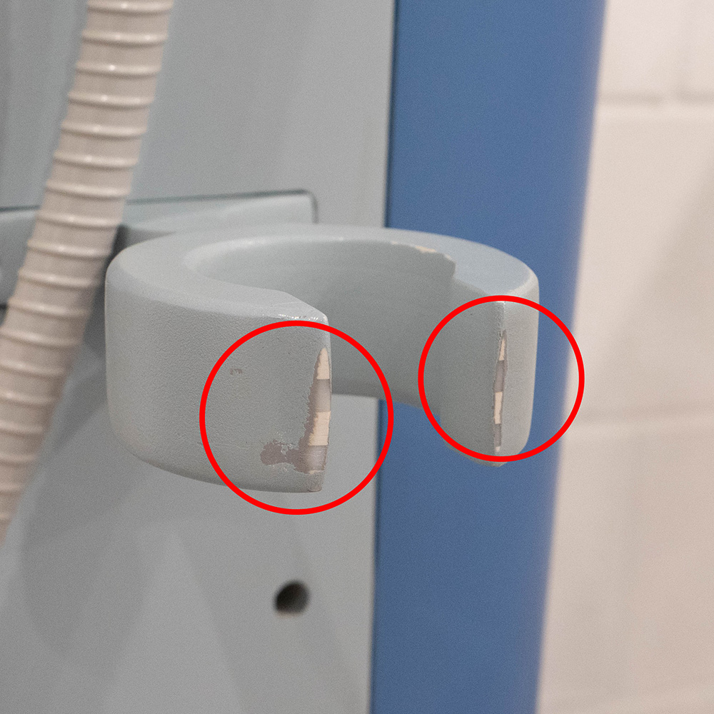 Apparecchiatura carrellata dotata di 4 manipoli (2 per il corpo e 2 per il viso) con relativi supporti, display Touch Screen a colori e arresto di emergenza.