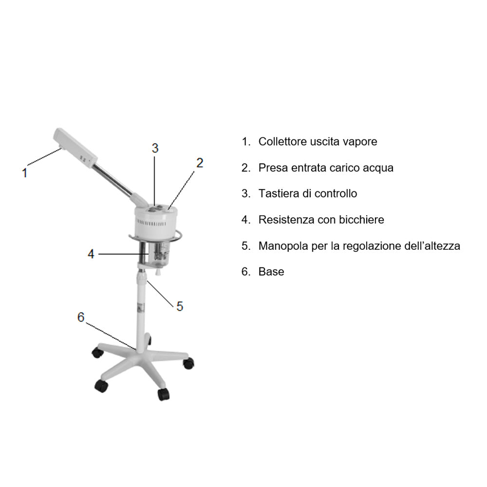 Vaporizzatore con stativo Stige Due interruttori On/Off Vaporizzatore viso professionale ad ozono. Dotato di: